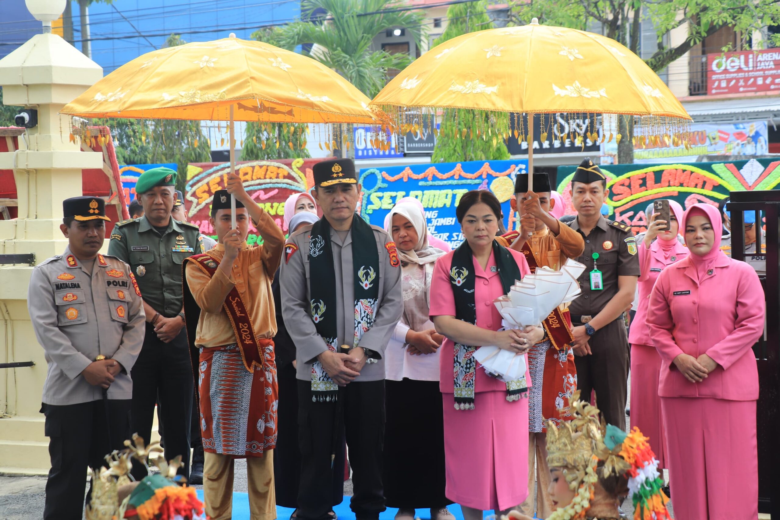 Kedatangan Jendral Bintang Dua tersebut di bumi Langkah Serentak Limbai Seayun disambut hangat oleh Kapolres Bungo, AKBP Natalena Eko Cahyono, S.KOM., M.Si beserta jajaran, serta unsur Forkopimda Kabupaten Bungo dengan rangkaian penyambutan di Mako Polres Bungo dengan berbagai kegiatan tradisional dan penghormatan, seperti pengalungan bunga, tari Sekapur Sirih, hingga jajar hormat.