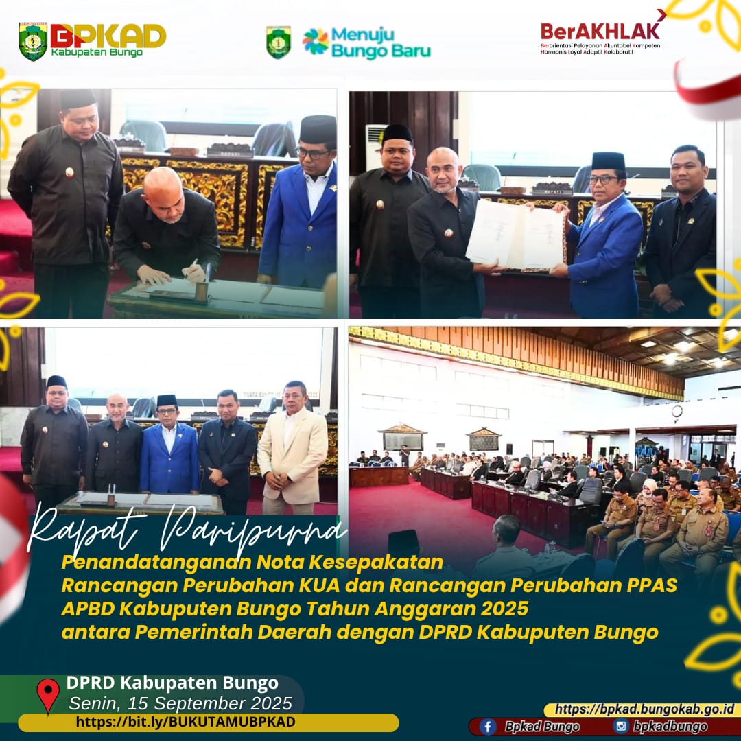 Kepala BPKAD Bungo Hadiri Rapat Paripurna Penandatanganan Nota Kesepakatan Perubahan KUA dan PPAS APBD 2025